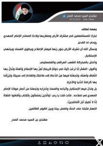 أخبار, العراقالصدر: نرغب بدولة تذل الفساد وأحزابه مدير التحريرفبراير 26, 2024 شارك الخبرقال زعيم التيار الصدري، مقتدى الصدر، “نرغب بدولة تذل الفساد وأحزابه”.