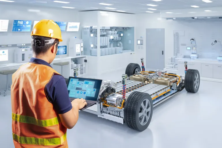 بطاريات السيارات الكهربائية تتكون عادة من خلايا الليثيوم أيون لكثافة الطاقة العالية وكفاءتها ووزنها الخفيف نسبيا (شترستوك)