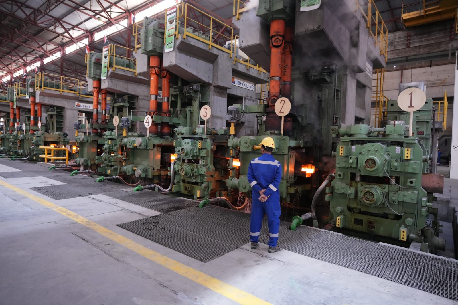 وأضاف: “ويغذي مصنع الدرفلة، إلى جانب مصنع الصلب والخدمات الهندسية الملحقة بهما، حاجة الاستهلاك المحلي لحديد التسليح بالدرجة الأولى، وبطاقة إنتاجية تصل إلى 500 ألف طن سنوياً، ضمن أحدث المواصفات القياسية العالمية، ووفق عملية إنتاجية مؤتمتة، وسيطرة إلكترونية مبرمجة”.