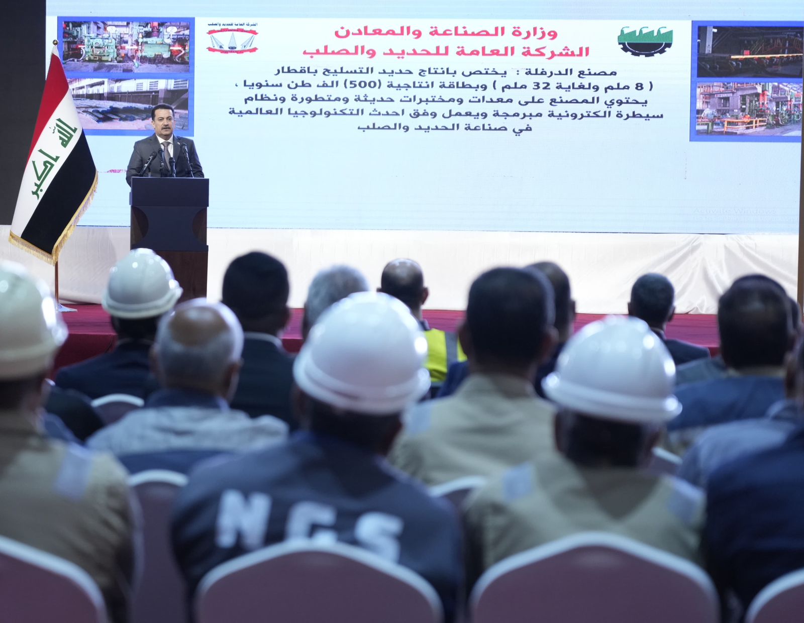 وقال رئيس مجلس الوزراء، خلال حفل افتتاح مصنع الدرفلة، إن “إنجاز هذه المصانع وتأهيلها، بعد سنوات من التأخير والتعطيل والمشاكل، يعد خطوة مهمة تجاوزت كل هذه الأسباب وتمكنت من كسر التحديات”، مضيفاً: “اليوم نفتتح مصنع الدرفلة، وبعد مدّة قريبة سنفتتح مصنع الصُلب، لتكتمل حلقة إنتاج وتصنيع الحديد بكل الاختيارات والأنواع”.