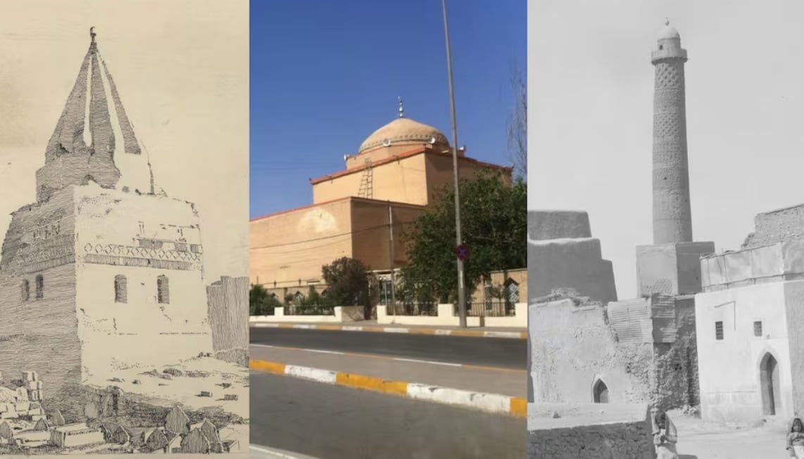 يشتهر جامع النوري الكبير في مدينة الموصل الشمالية بمئذنته المائلة المميزة الملقبة بالحدباء.