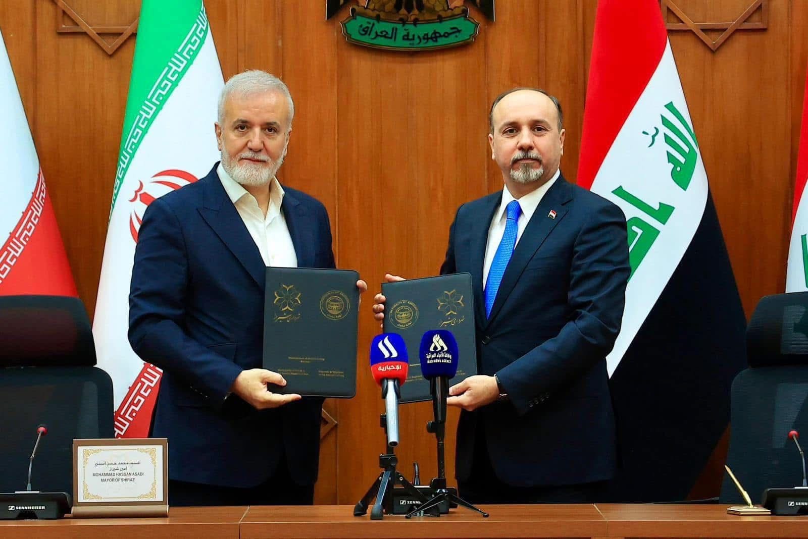 جاء ذلك خلال حفل رسمي اقيم في مقر امانة بغداد جرى خلاله توقيع المذكرة بين امين بغداد المهندس عمار موسى كاظم وامين مدينة شيراز السيد محمد حسن اسدي ، لتعزيز الصداقة والتعاون المتبادل في ميادين البيئة والزراعة والثقافة والتنمية الحضرية والخدمات الأساسية .